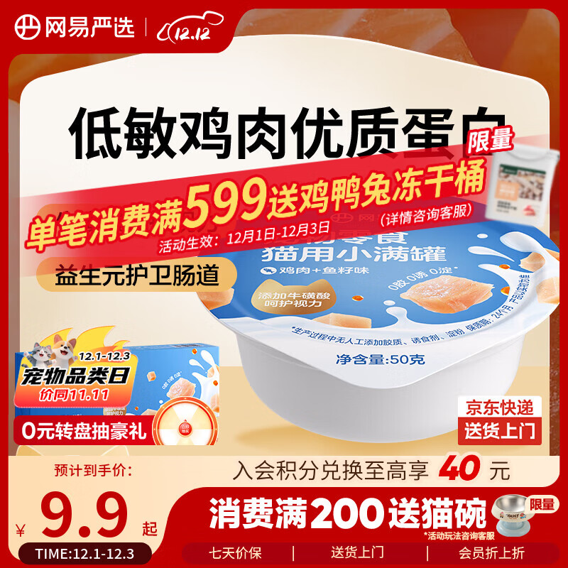 包邮 网易严选猫零食罐头猫用小满罐猫罐头零食猫罐头鸡肉+鱼籽味50g